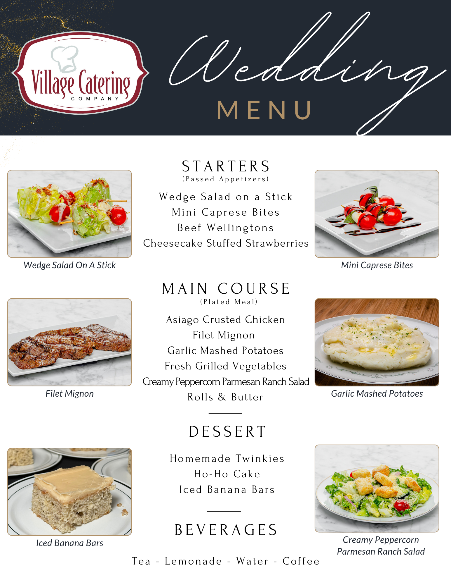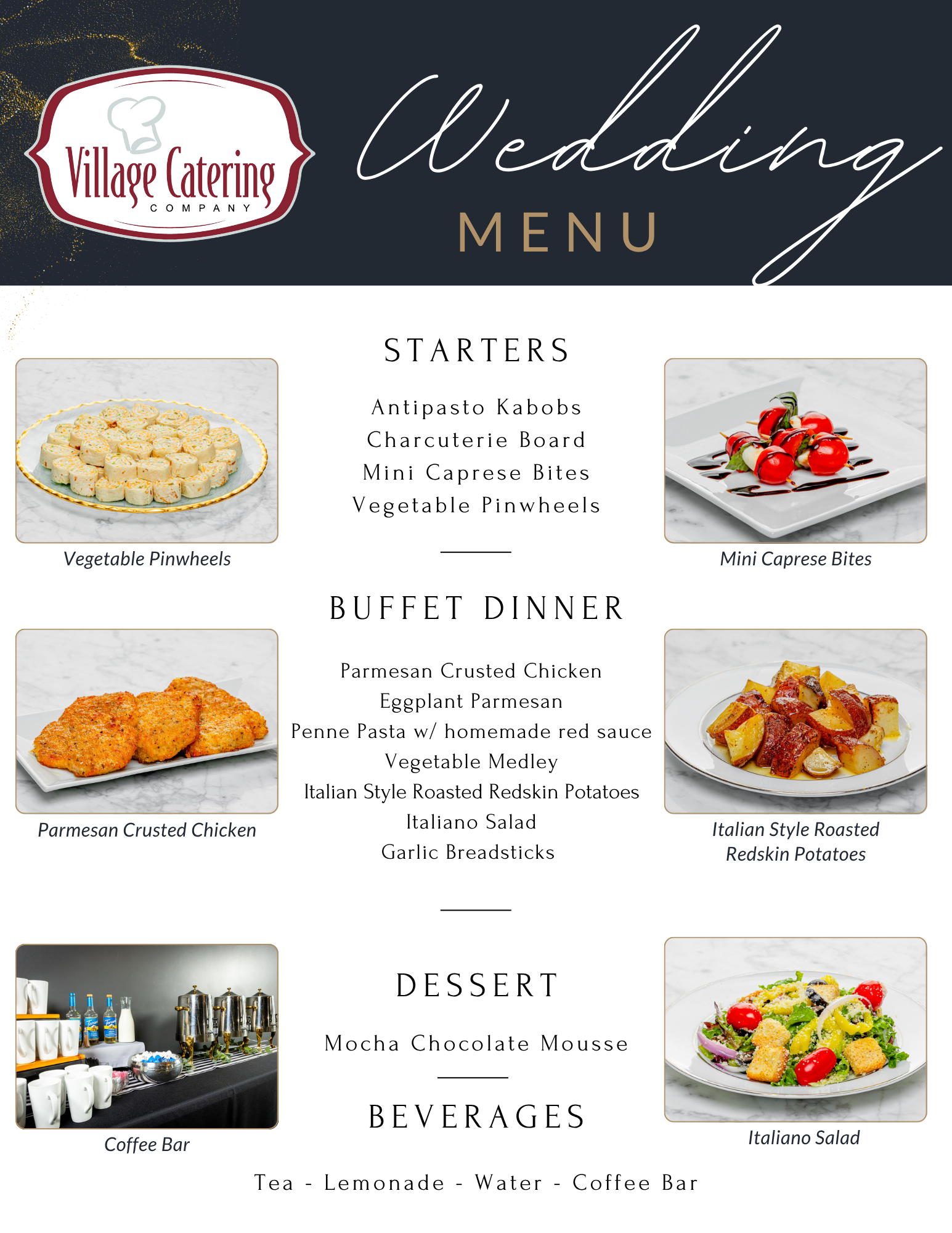 We offer customizable menus, tasting appointments, and a variety of service styles to match your preferences. With linens, décor options, and exclusive access to our stunning venues, Village Catering is your one-stop shop for wedding perfection.